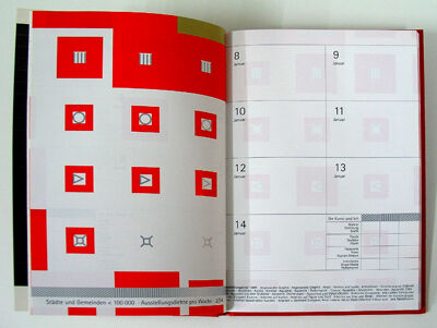 Cellas Kalender-Tafeln machen die verschieden strukturierten Datenmengen vor dem Hintergrund einer in weiten und entscheidenden Bereichen mediatisierten Welt in digitalisierter Form sichtbar. Hier setzt der eigentliche künstlerische Prozeß ein, der die langwierige Forschungsarbeit zur Voraussetzung hat. Im Ausformulieren einer Formensprache, die Ergebnisse in einem medienspezifischen Zeichensystem aufzulisten imstande ist, sucht die Kunst-Haltung einen der wissenschaftlichen und ästhetischen Ebene adäquaten Darstellungsmodus auf. Nicht zufällig ist eine ornamentale Gestalt das Ergebnis dieser reflexiven Überlegungen. Nicht zufällig vor allem dann, wenn wir uns den Aufbau digitaler Informationsstrukturen vor Augen halten. Doch die wesentliche Entscheidung für die Anwendung eines spezifischen Formenkanons liegt ausschließlich im Künstlerischen begründet, nämlich durch die Absicht, Kunst als Informationsinstrument parallel zu wissenschaftlichen Forschungsergebnissen und als deren ästhetische Übersetzung einzusetzen. Im konkreten Untersuchungsfeld ist die Tatsache bedeutsam, daß das Datenmaterial aus der Kunst entnommen wird und exemplarisch deren gesellschaftliche und geografische Positionierung widerspiegelt. Der ornamentale Duktus der Siebdrucke repräsentiert über weite Strecken in einem Zeittransfer und einem festgelegten Ausschnitt Kunsttraditionen und gegenwärtige wissenschaftliche Datenverarbeitung. In umgekehrter Folge regt die Realität elektronischer Speicher und deren alltagästhetisches, Information sammelndes und zur Verfügung stellendes Zeichenrepertoire die Gestaltstruktur des druckgrafischen Blattes an und legt die endgültige Form innerhalb eines begrenzten Koordinatensystems fest. Die Darstellung von Zentren und Peripherien sind nicht dynamische Entscheidungen aus einem individuellen handschriftlichen Duktus, sie sind Ausfluß einer innerhalb eines Regelsystems durchgeführten Recherche. In der vorliegenden Raum- und Zeitlandschaft dominiert der Kulturstatus über jenen der Natur. Täler und Berge, erfaßt und transformiert auf der Ebene der Population sowie der institutionellen oder privaten Orte für Kunst, mutieren im Datenrhythmus zu geografisch und zeitlich bedingten visuellen Leerstellen bzw. farbig-materiellen Konzentrationen. Malerei oder digitale Medien als künstlerische Spezies lagern sich als grafische Spuren einer Typologisierung im bunt-geometrischen Raster ab. Wir erhalten keine individuellen, sondern pauschalierte Auskünfte. Der Mangel an Feinstrukturen kann als Symptom der normativen Kategorisierung und Plazierung von Fakten gelesen werden. Symbolistische und systematische Anordnungen in der Kunst, von Mandala über die Farbforschung bis hin zur op art, haben immer wieder auf den ersten Blick ornamentale Erscheinungsformen hervorgebracht. Die Muster der “Jahrestafeln“ bilden da keine Ausnahme. In erster Linie deshalb, weil sie Informationen in Analogie zum mediatisierten Raum verarbeiten, auf seine Sprachform reagieren und auf diese Weise die Schnittstelle zwischen Kunst und Wissenschaft aufgespürt zu haben scheinen. Im Rot und Gold freilich, den Verdichtungsfarben des “Systems“, wird die sinnliche Wertsymbolik der Kunst repräsentiert.