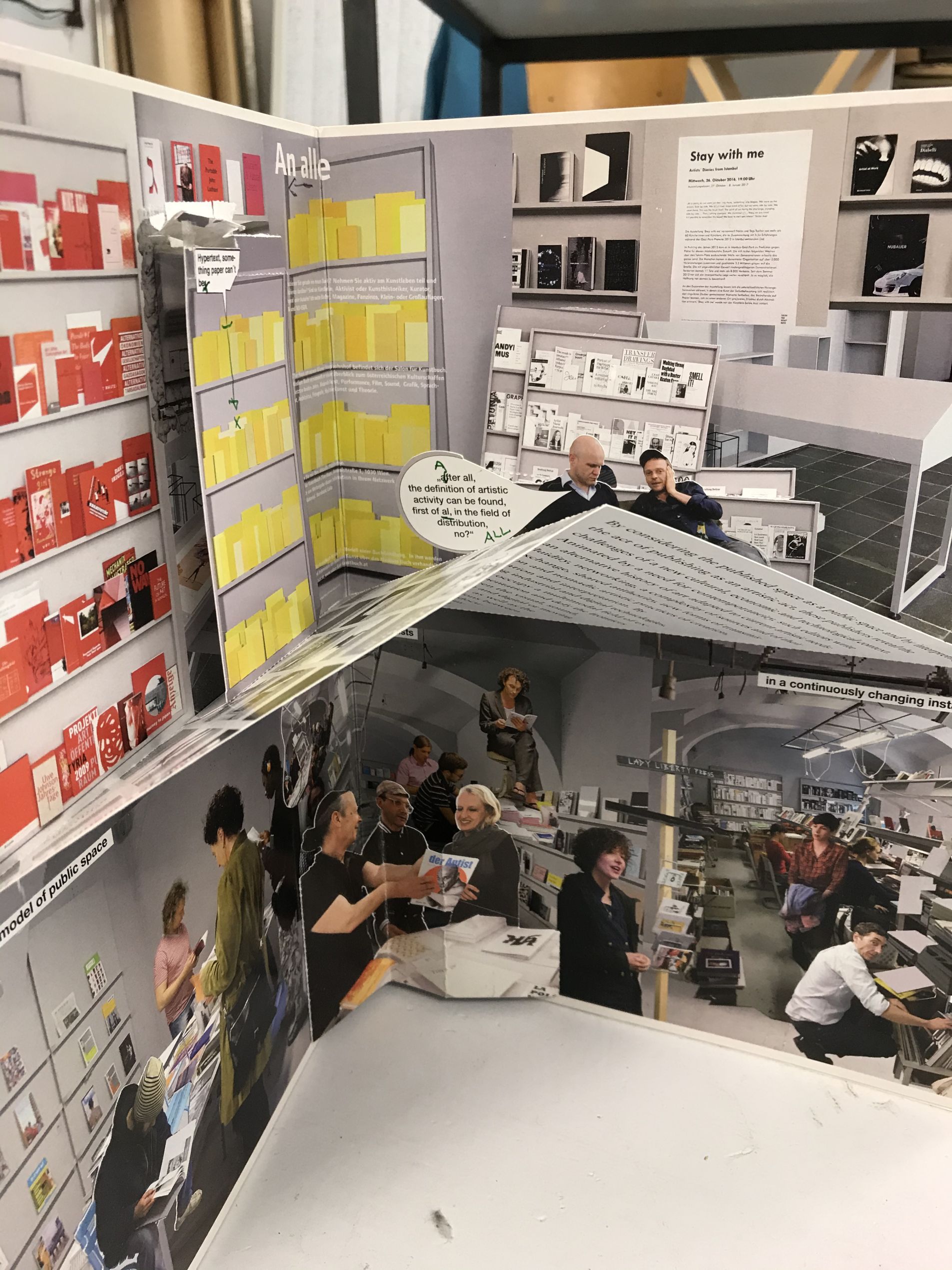 The publication brings together photographs, diagrams, and formal propositions that relate book spaces, shelving systems, exhibition displays, and publishing contexts. Rather than unfolding a linear argument, it develops a spatial logic in which the act of turning pages itself becomes a movement through a conceptual book space.